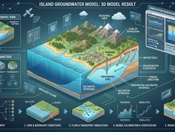 Ntek provided specialized hydrogeological expertise to create a predictive digital twin of Barbados' underground water systems. The technical execution was divided into several high-complexity phases: